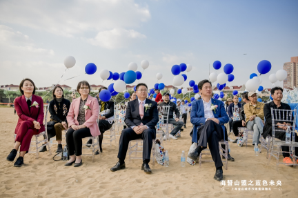 10月24日下午,一场“海誓山盟之蓝色未央”集体婚礼在城市沙滩浪漫上演。金山区卫生健康系统10对新人携手踏上了婚礼舞台,这些新人中,有逆行武汉的援鄂英雄,有守护生命的白衣天使,还有默默奉献的无名战士。金山城市沙滩作为金山区的一张靓丽名片,此次以蓝天、沙滩为自然画布,同时将婚恋交友与文化旅游深度融合,呈现了一场清新、唯美又浪漫的集体婚礼。